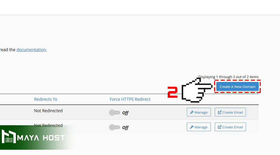 - سپس بر روی دکمه Create A New Domain کلیک کنید.